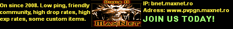 Online since 2008. Version 1.13c and up. Low ping, friendly community, high drop rates, high exp rates, some custom items. IP: bnet.maxnet.ro